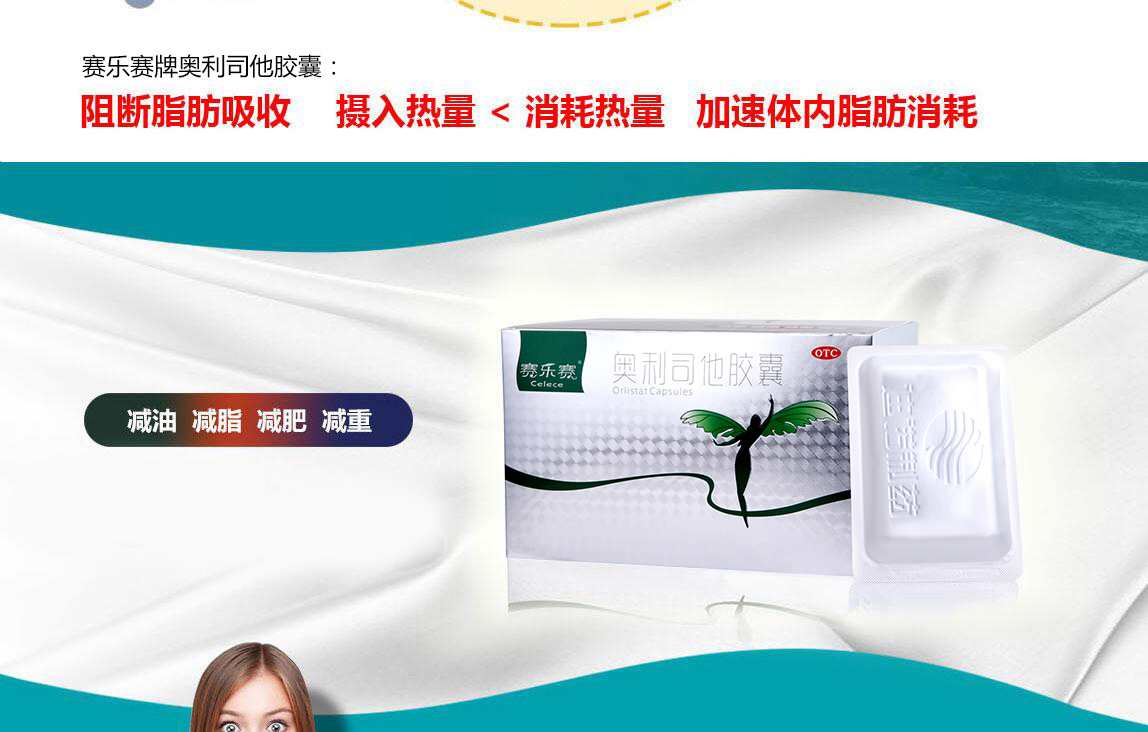 产品简介 【药品名称】 通用名称:奥利司他胶囊 【主要原料】奥利司他 【作用类别】本品为抗肥胖症药类非处方药药品。 【适 应 症】用于肥胖或体重超重患者(体重指数≥24)的治疗。 【规 格】0.12克 【用法用量】成人:餐时或餐后1小时内口服1粒。如果有一餐未进或食物中不含脂肪,则可省略一次服药。